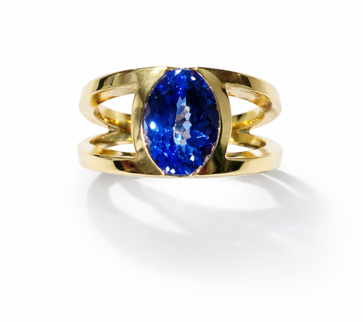Bague or jaune 750/1000e sertie d'une tanzanite 2.36 cts.